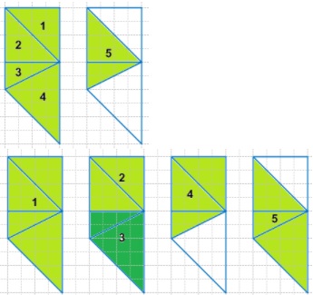 количество. Треугольников - 5 и четырёхугольников - 5.