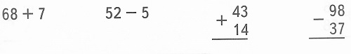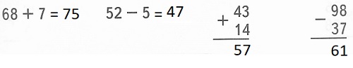 угол острый и один угол тупой. 5. Ответ: 8 + 17 = 25 30 - (6 + 6) = 30 - 12 = 18 62 + 30 - 2 = 90 6. Вычисли, записывая решение столбиком, и сделай проверку. Ответ: 32 + 27 = 59 Проверка: 7. Из 9 палочек сложили такую фигуру. Переложи 2 палочки так, чтобы получилось 3 треугольника.