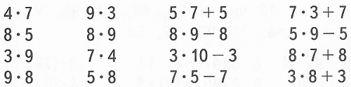 Ответ: 99 : 33 = 3 84 : 7 = 12 56 : 2 = 28 72 : 3 = 24 4. В среду в библиотеке побывало 34 человека, в четверг — на 25 человек меньше, а в пятницу — в 3 раза больше, чем в четверг. Объясни, что означают выражения, и вычисли их значения: 34 — 25, (34 — 25) • 3 34 — 25 = 9 человек было в четверг. (34 — 25) • 3 = 27 человек было в пятницу. 5. Найди,
