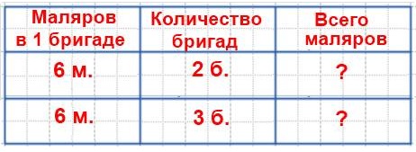 Решение: 100 : 10 = 10 (к.) - было продано. 4. На стройке работали 3 бригады маляров, по 6 человек в каждой. Сколько маляров было в 3 бригадах? в 2 бригадах?